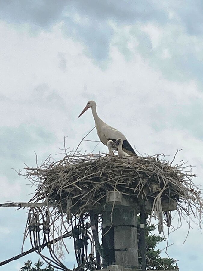 Am Appl Nest sind zwei gesunde Küken zu sehen und wurden von Ulla Löffler schön fotografiert. Wegen der Stromleitung halten wir uns aber hier zum Beringen fern.