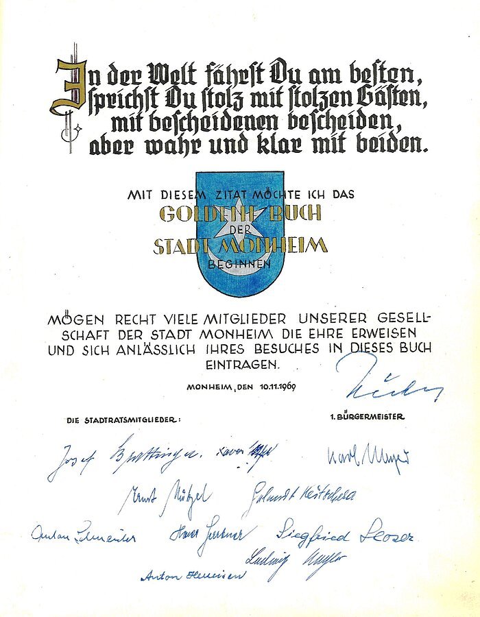 Mit diesem Zitat wurde das Goldene Buch der Stadt Monheim