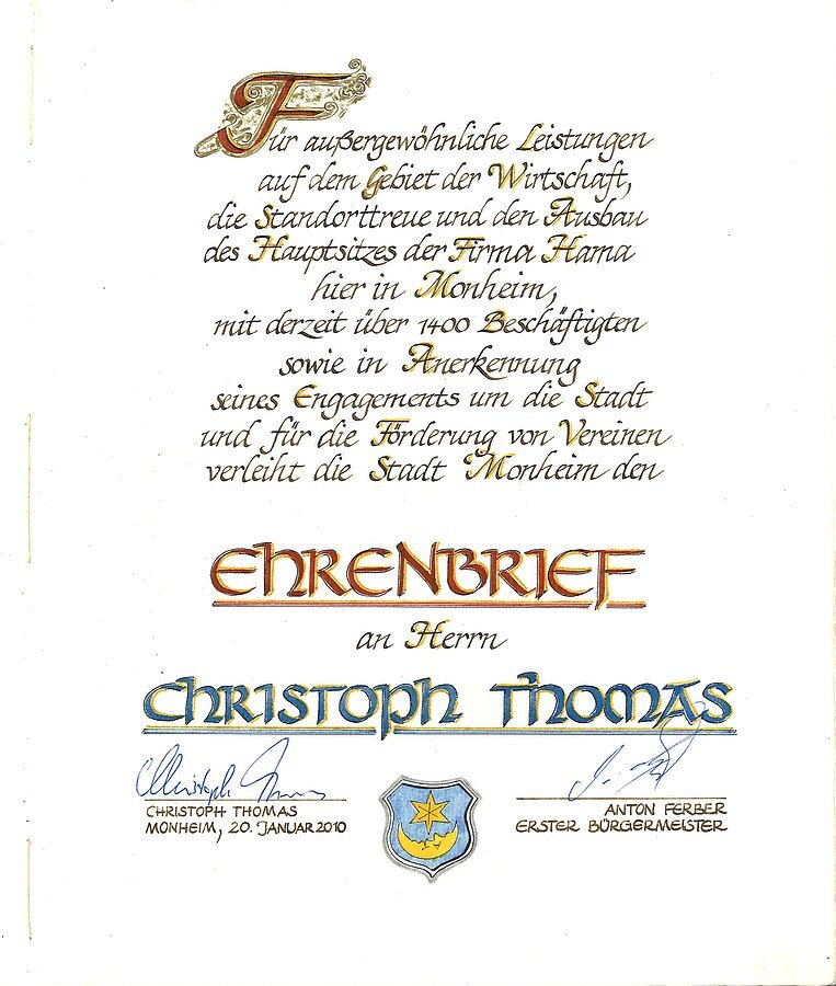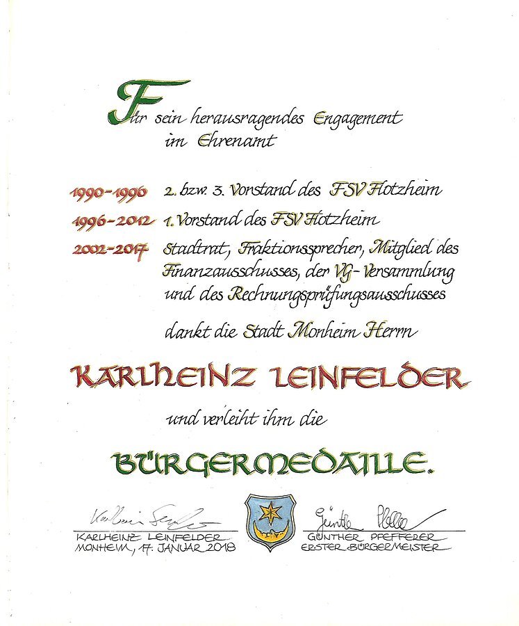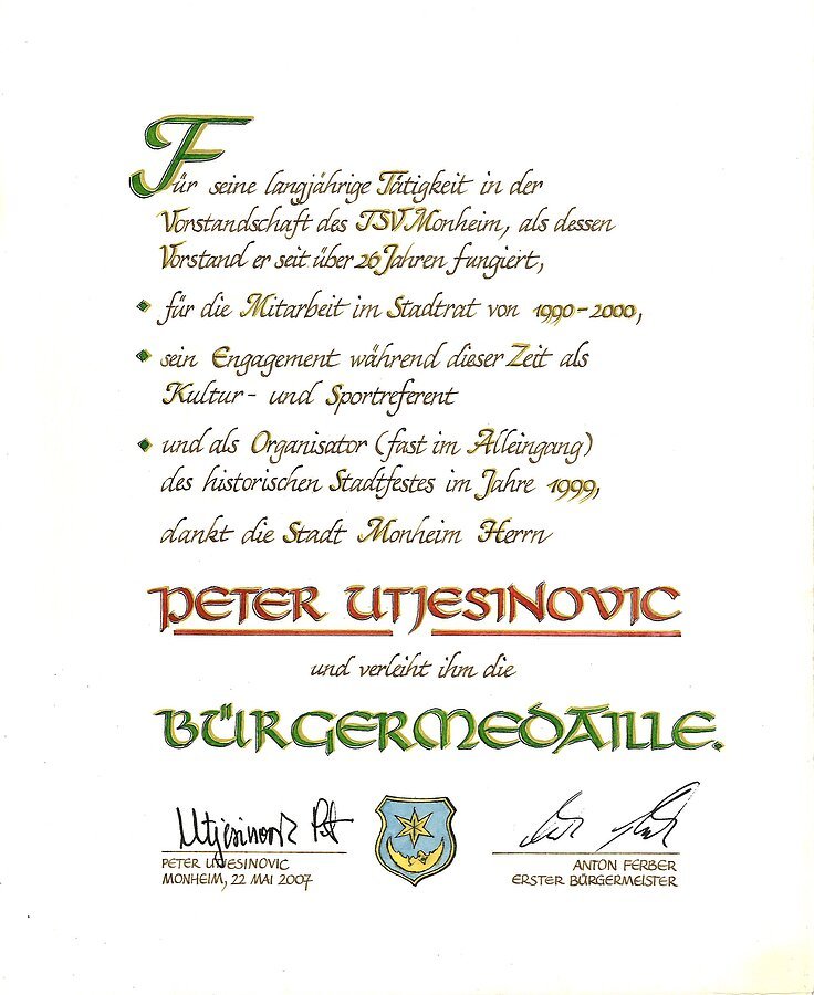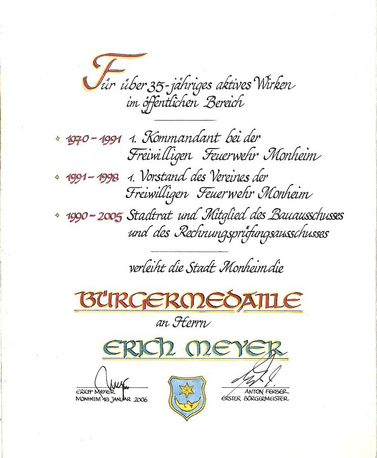 - Träger des Ehrenbriefes der Stadt Monheim