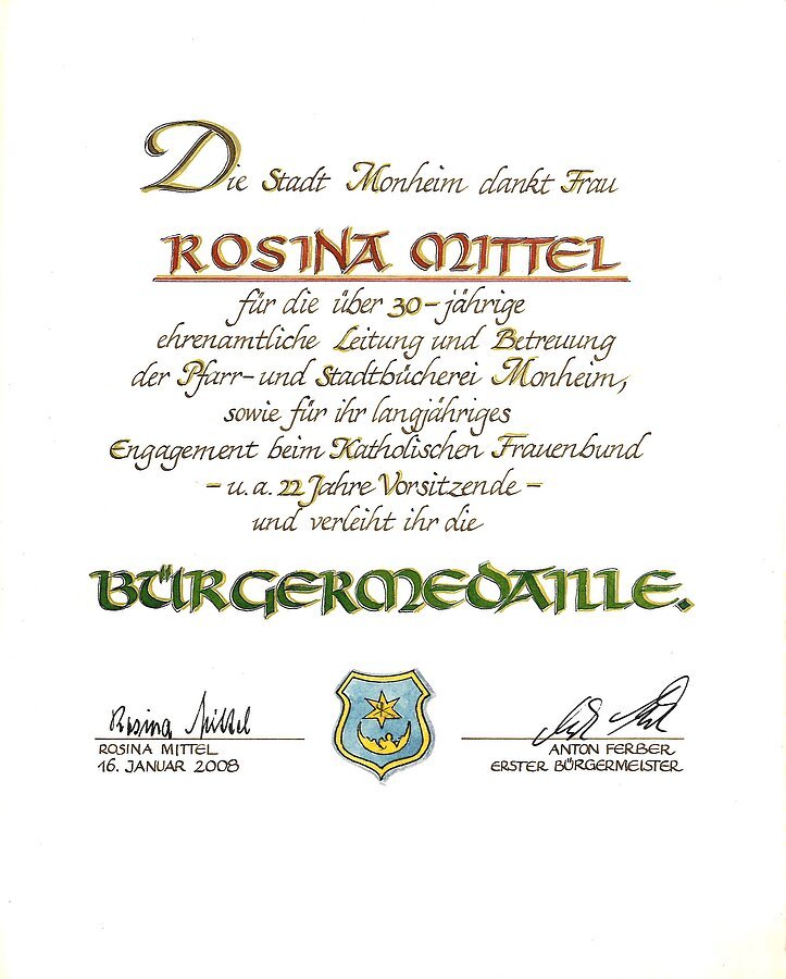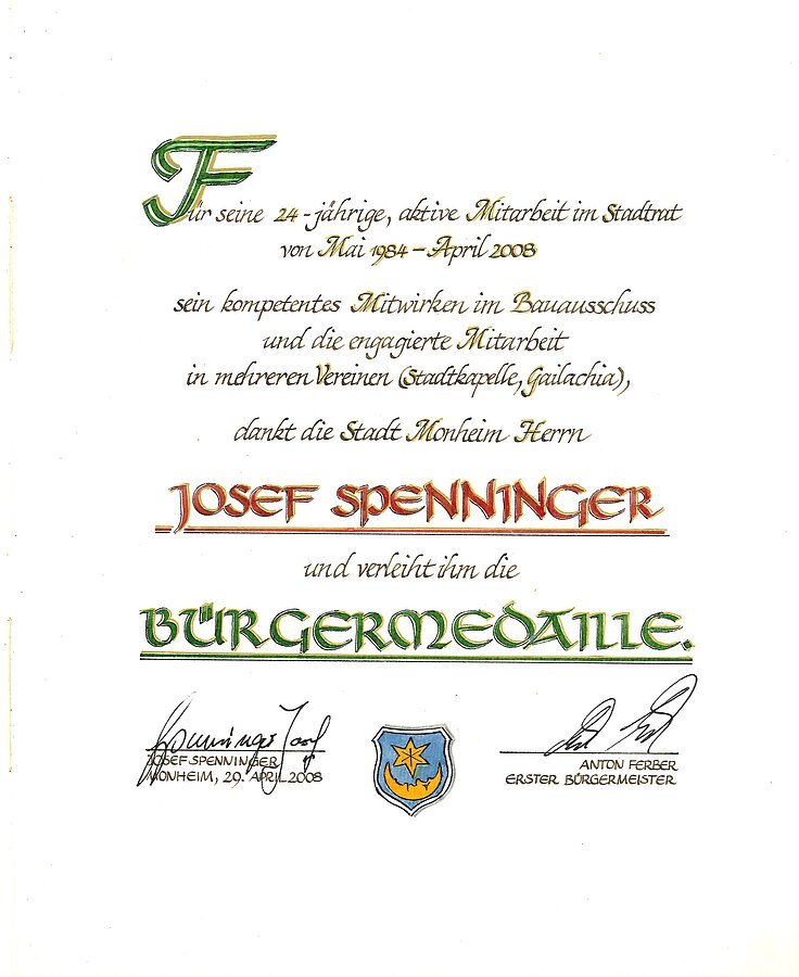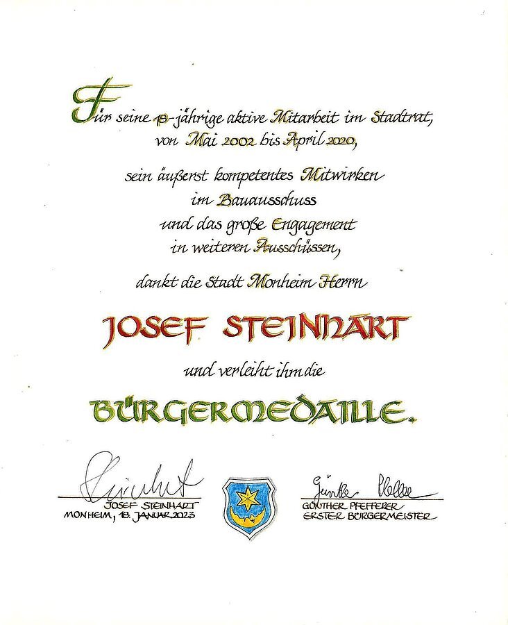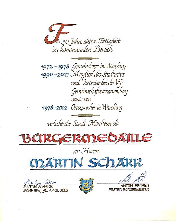 - Träger der Bürgermedaille der Stadt Monheim