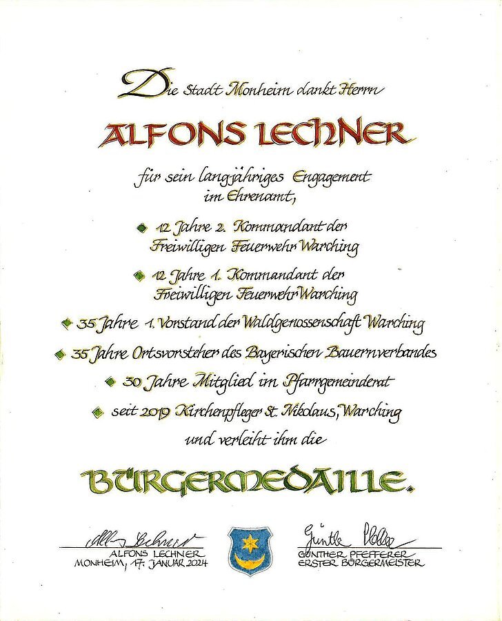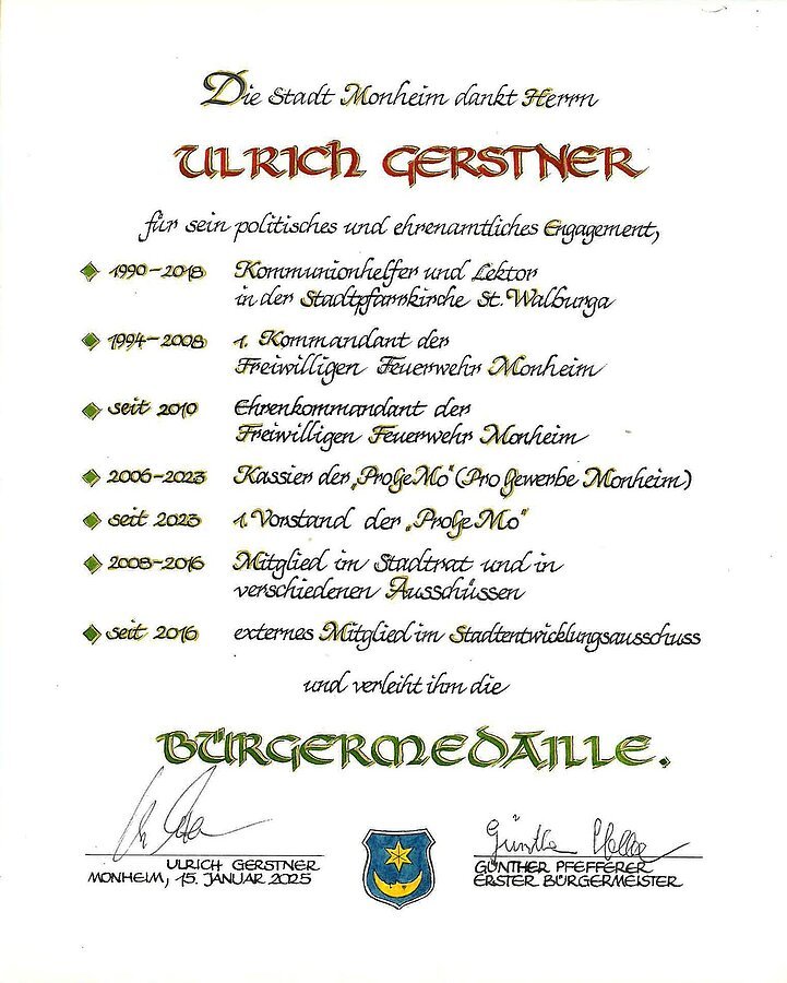 - Ernennung zum Altbürgermeister der Stadt Monheim