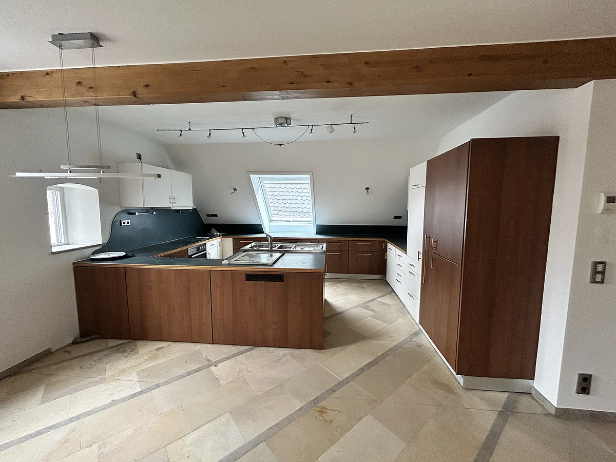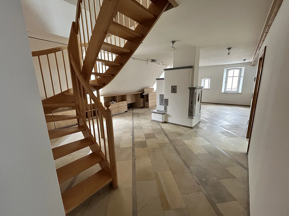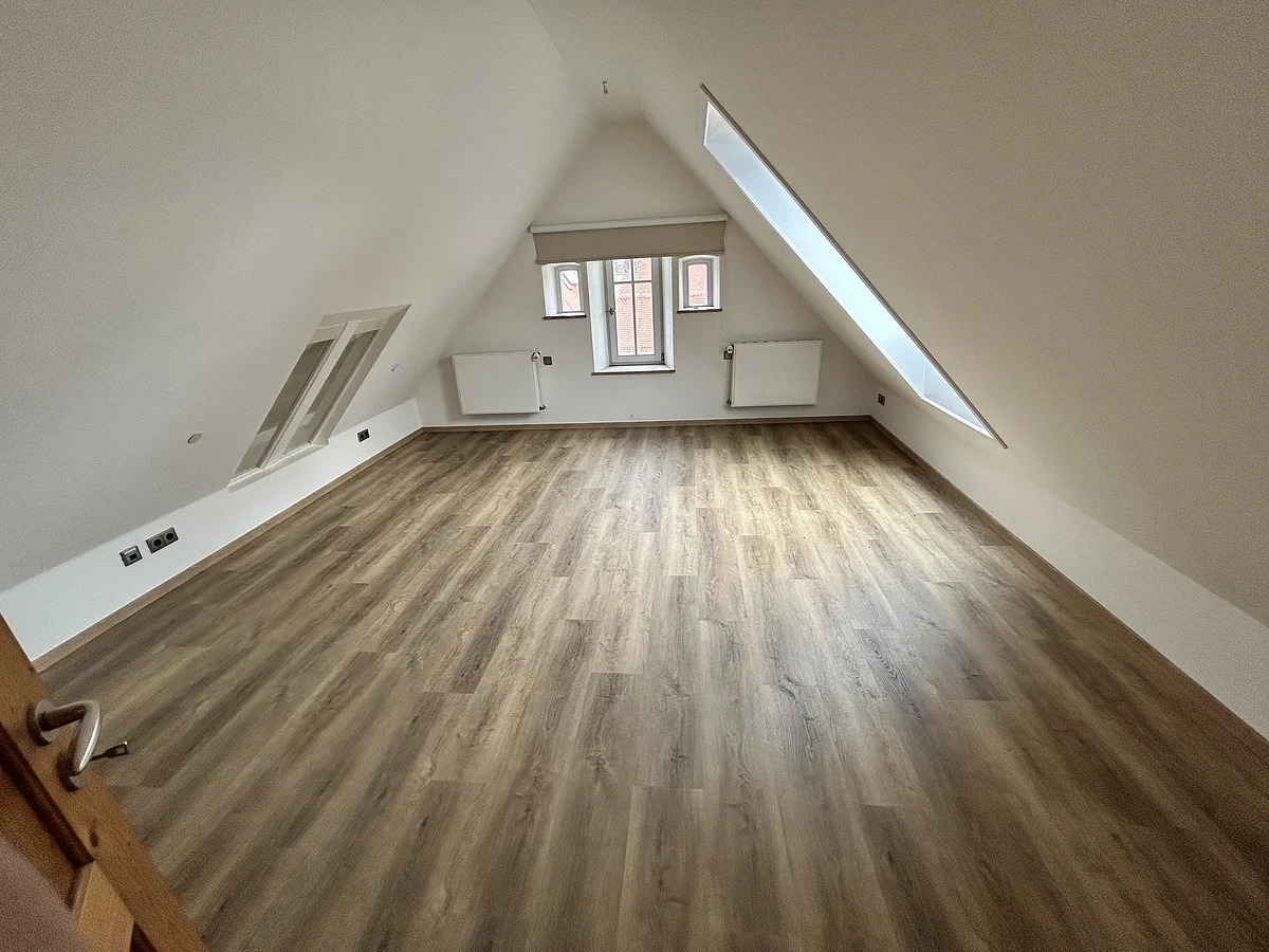 Willkommen in dieser außergewöhnlichen 133 m² großen Maisonette-Wohnung an einer der besten Adressen von Monheim! Diese großzügige Wohnung erstreckt sich über zwei Etagen im Dachgeschoss des gepflegten Gebäudes am Marktplatz und bietet eine perfekte Kombination aus historischem Charme und modernem Komfort.