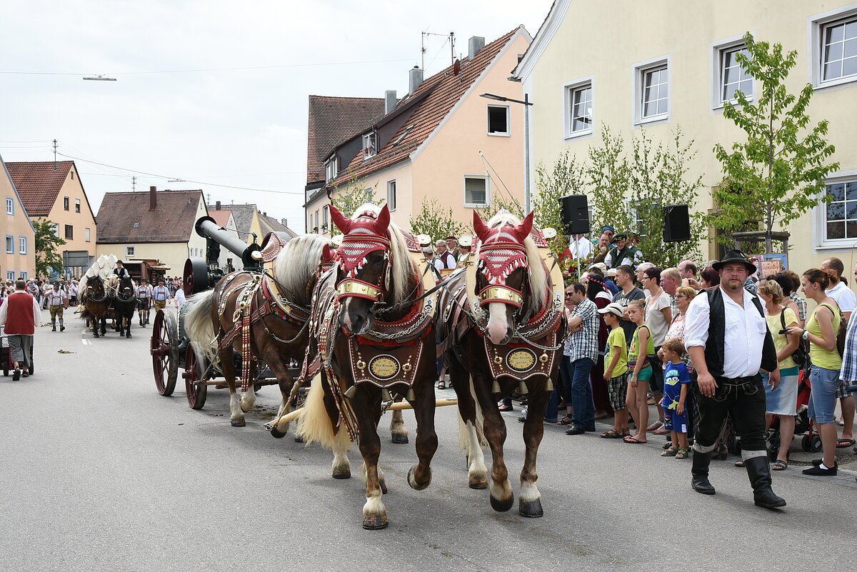 - Historischer Festumzug am Sonntagnachmittag mit Gespannen, Kutschen und Pferden