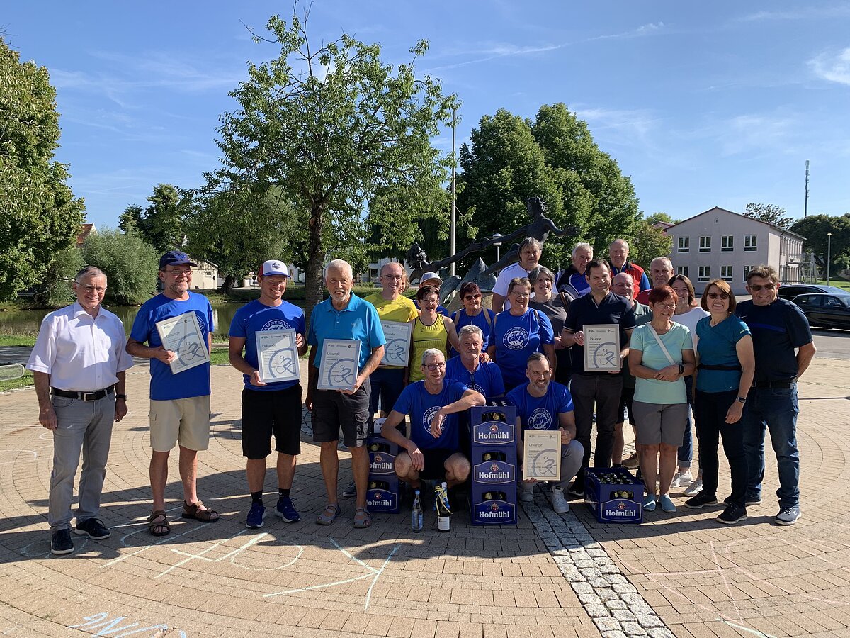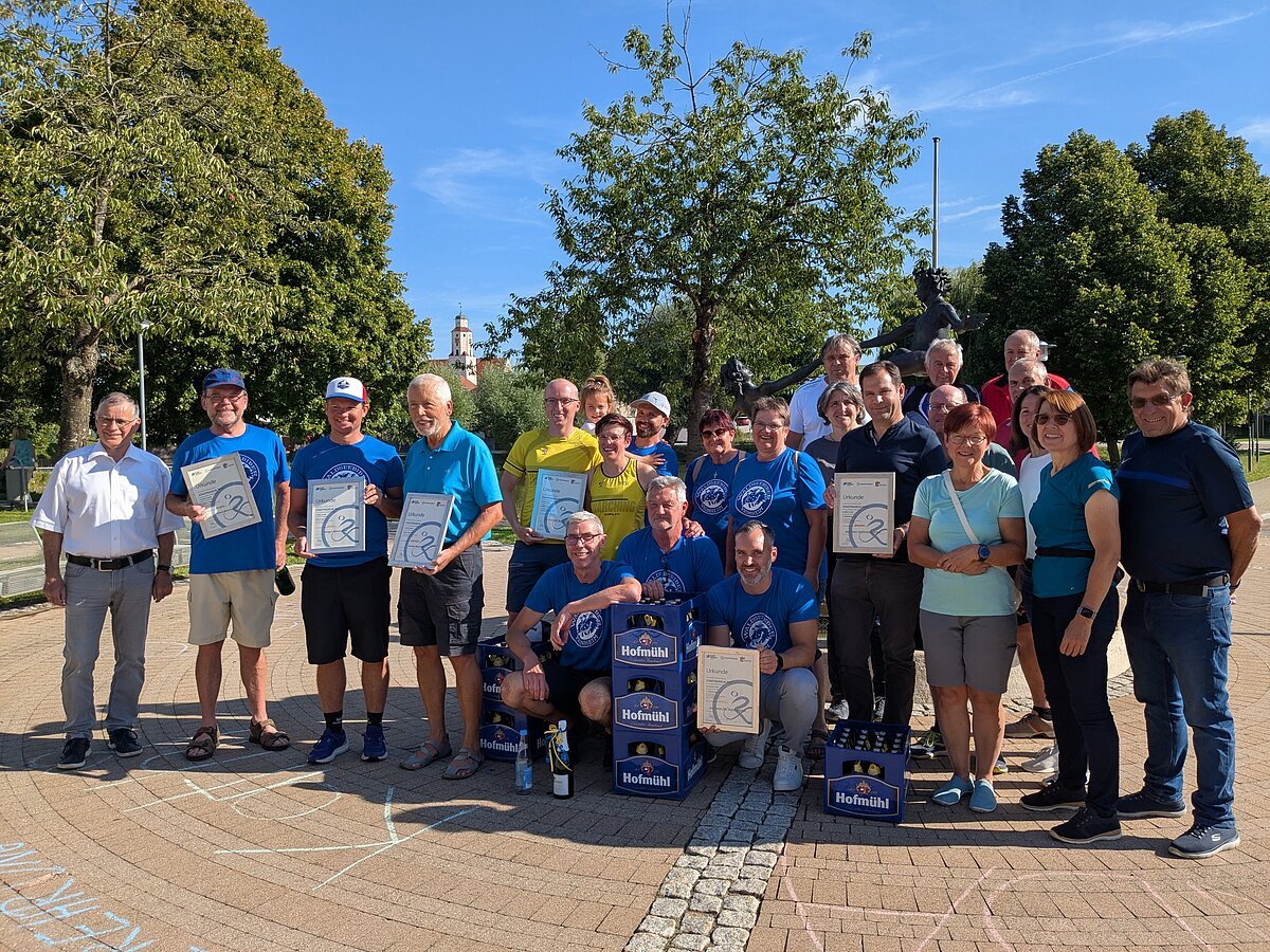 Am Donnerstag, 7. August 2025, fand die Siegerehrung mit Gewinnübergabe an der Stadthalle Monheim statt. Bürgermeister Günther Pfefferer bedankte sich bei der Ehrung bei allen Teilnehmern vom Stadtradeln 2025 für das große Engagement und überreichte „flüssige Geschenke“. Ein besonderer Dank galt der Kolpingsfamilie Monheim, die als landkreisweite Auftaktveranstaltung die Radlweihe in Monheim organisiert hatte.