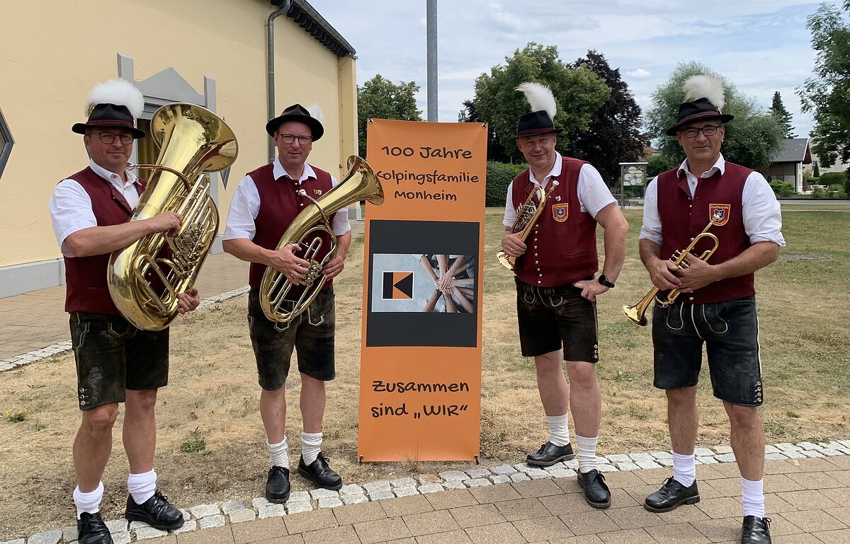 Bianca Kratzsch, Radverkehrsbeauftragte des Landkreises Donau-Ries, wünschte spannende, sichere und sportliche drei Wochen Stadtradeln. Bürgermeister Günther Pfefferer lobte die sportlichen Aktivitäten der Monheimer und der Kolpingsfamilie. Robert Zausinger, 1. Kolping-Vorstand, begrüßte alle Anwesenden und bedankte sich bei allen Aktiven. Der Festakt „Radlweihe“ wurde von der Bläsergruppe der Stadtkapelle musikalisch umrahmt.