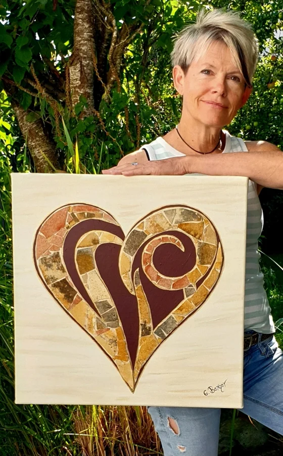 Im Haus des Gastes wird die Künstlerin Gerlinde Berger aus Flotzheim einige ihrer neuen Werke ausstellen. Kunst aus Solnhofener Plattenkalk auf Acryl und Leinwand unter dem Motto: “STEIN-kunterbunte Herzmomente“.